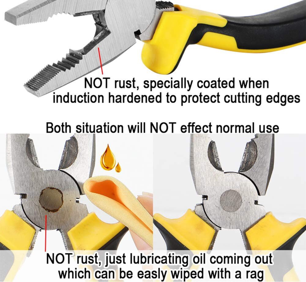 Durable & Powerful: The surface is coated with anti-rust oil. Durable nickel chromium steel construction. Ergonomic soft PVC handle provide extra comfort and reduce hand fatigue. Machined jaws provide maximum gripping strength. Induction hardened cutting edge stays sharp and longer