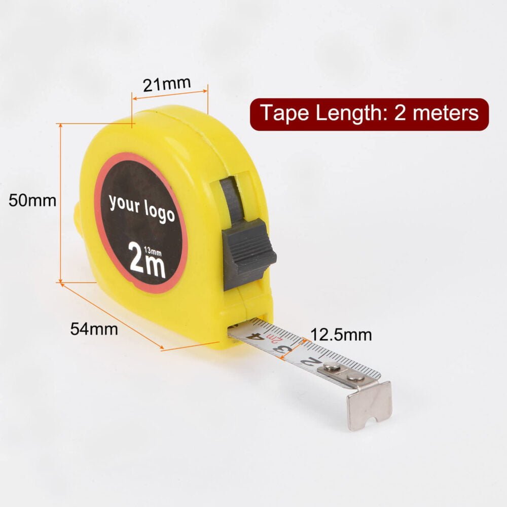 Mini Tape Measure 2M Metric Retractable Ruler Carbon Steel Measuring Tape 12.5mm Wide, Yellow ABS Plastic Shell