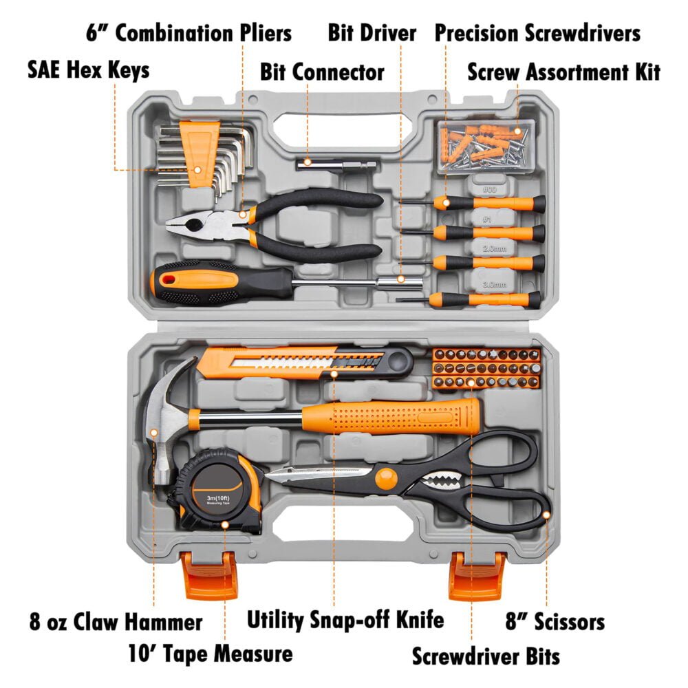 Tool Set General Hand Tool Kit with Plastic Toolbox Storage Case, Automotive Set